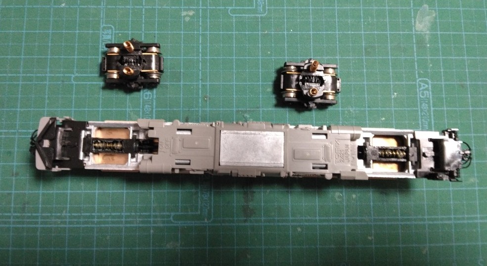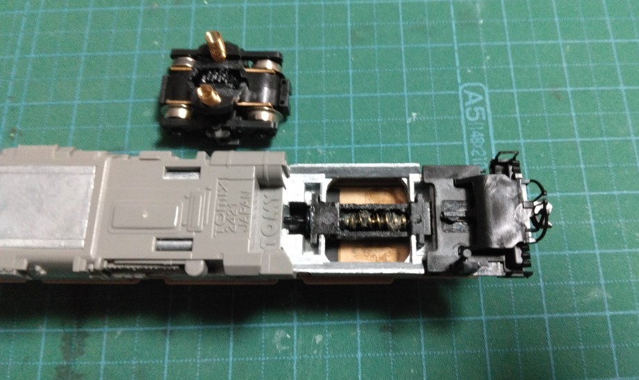 動力ユニットから両台車を取り外しました。